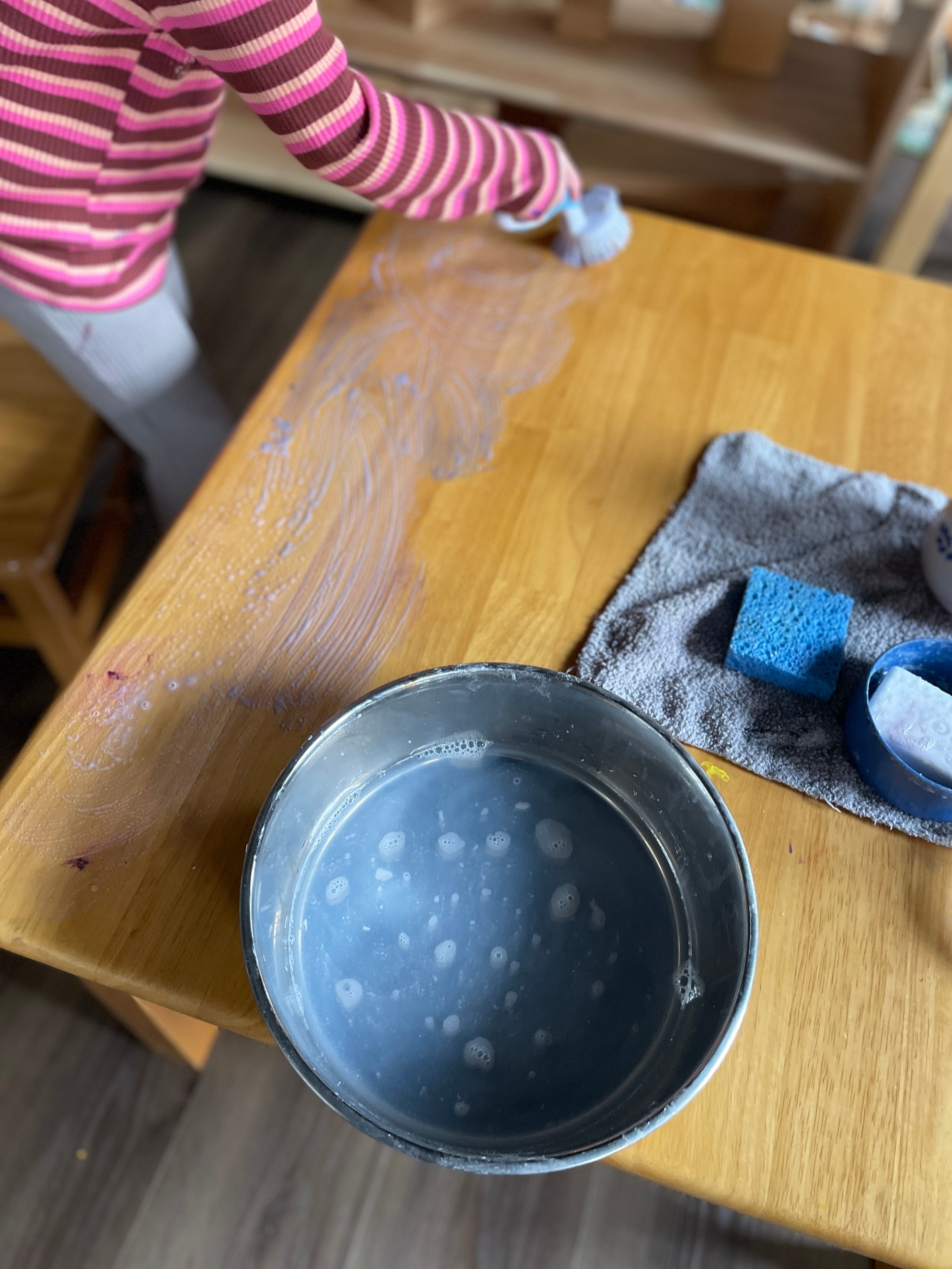 Someone scrubbing paint off the table. Messes make meaningful work.