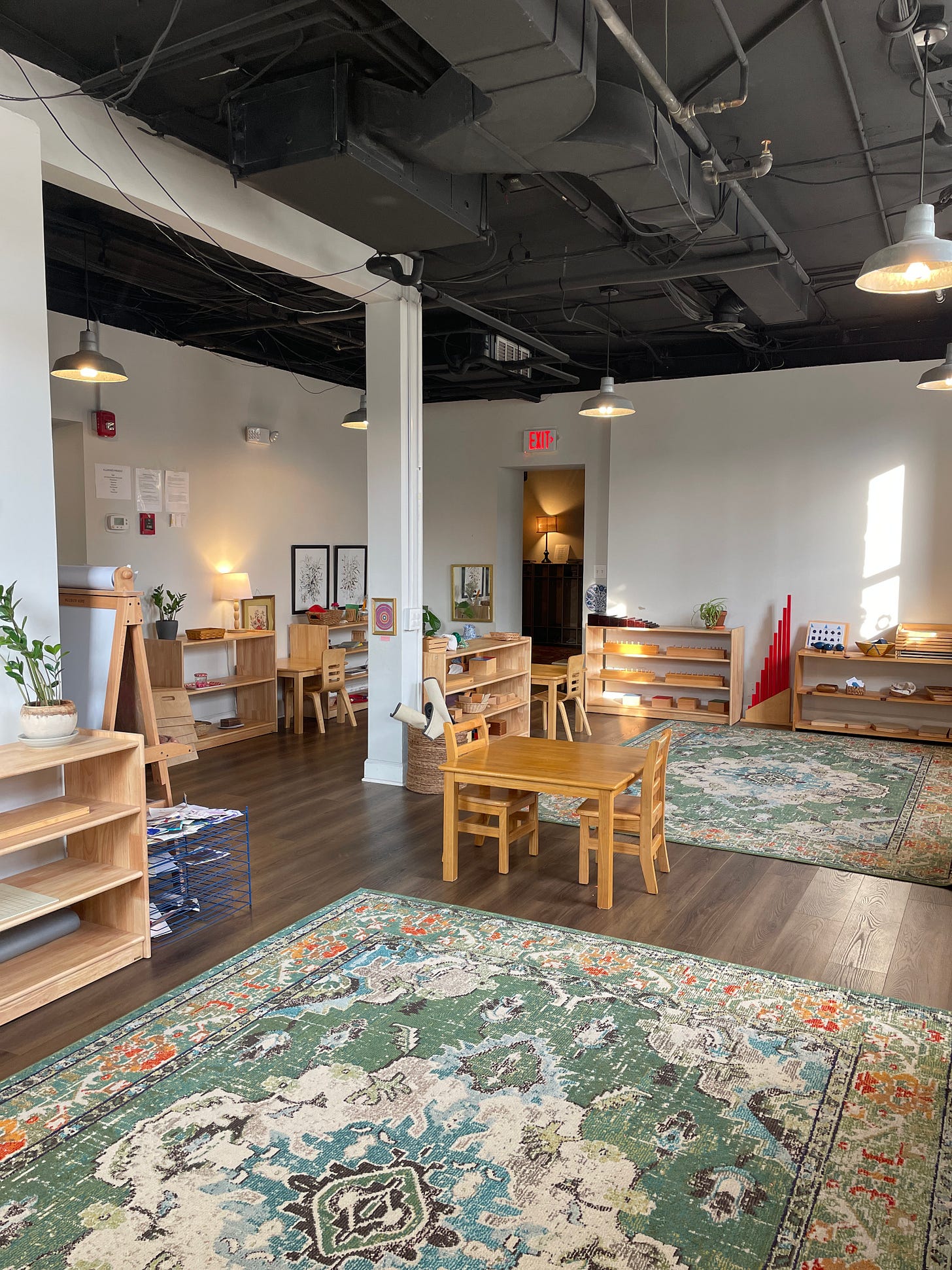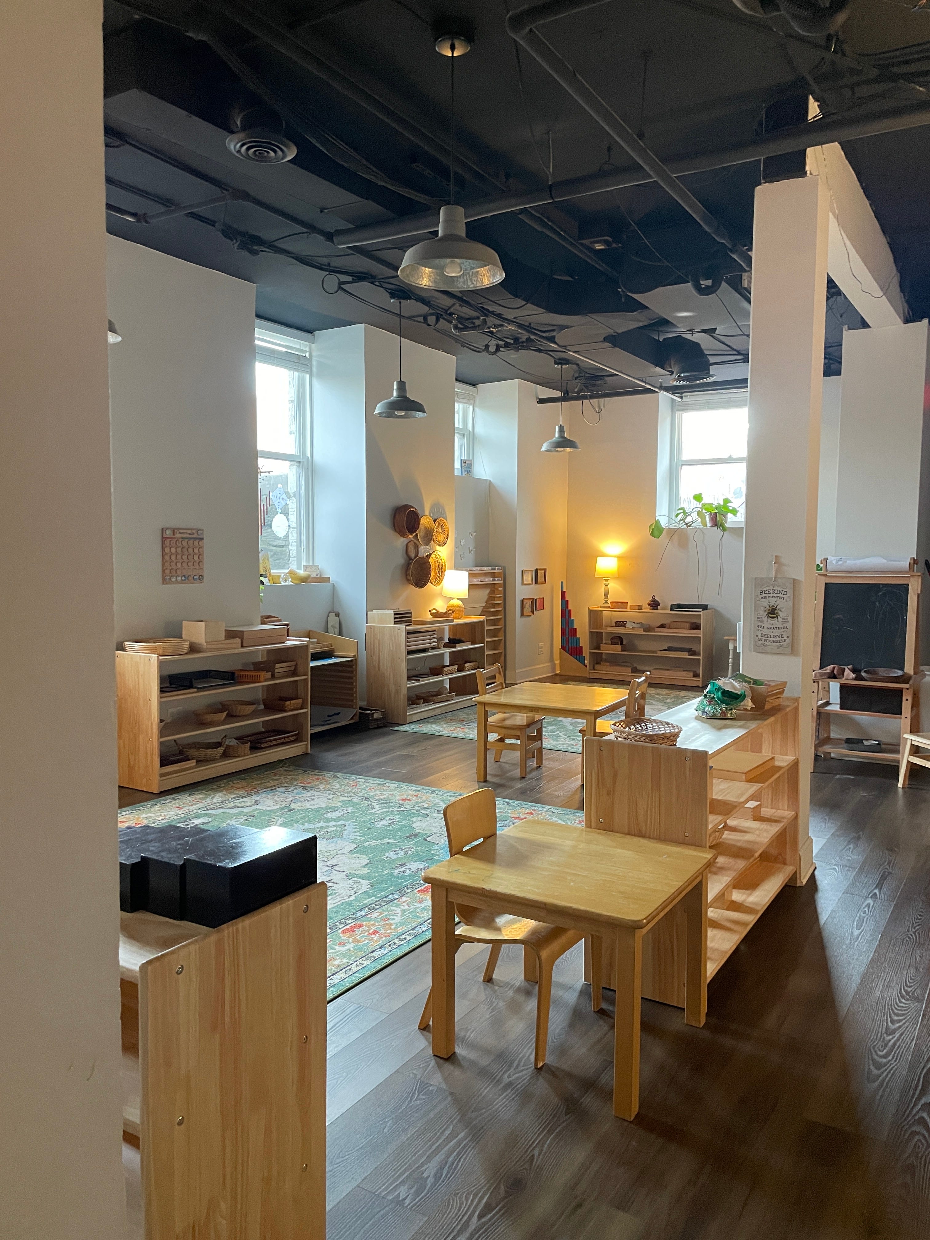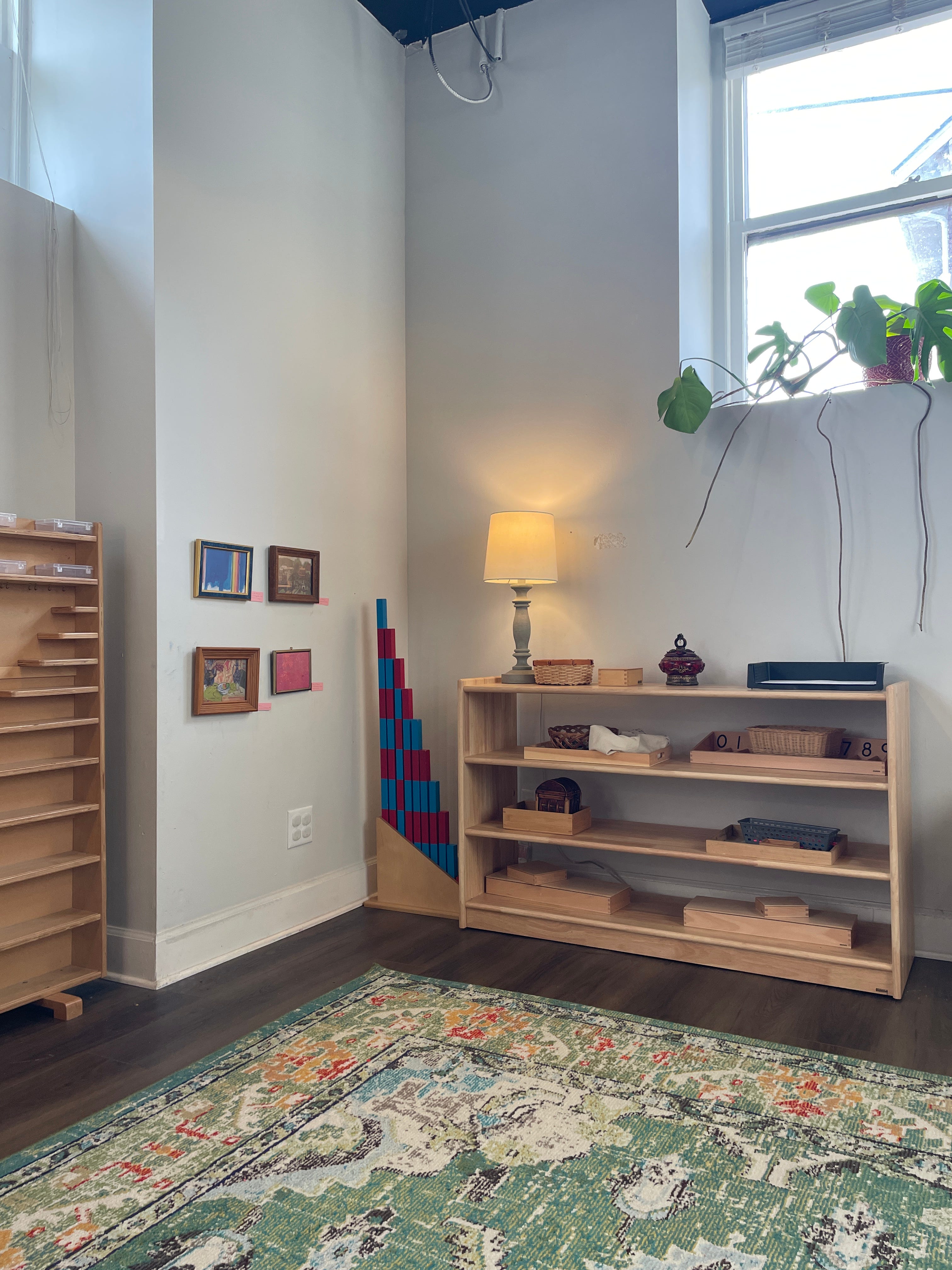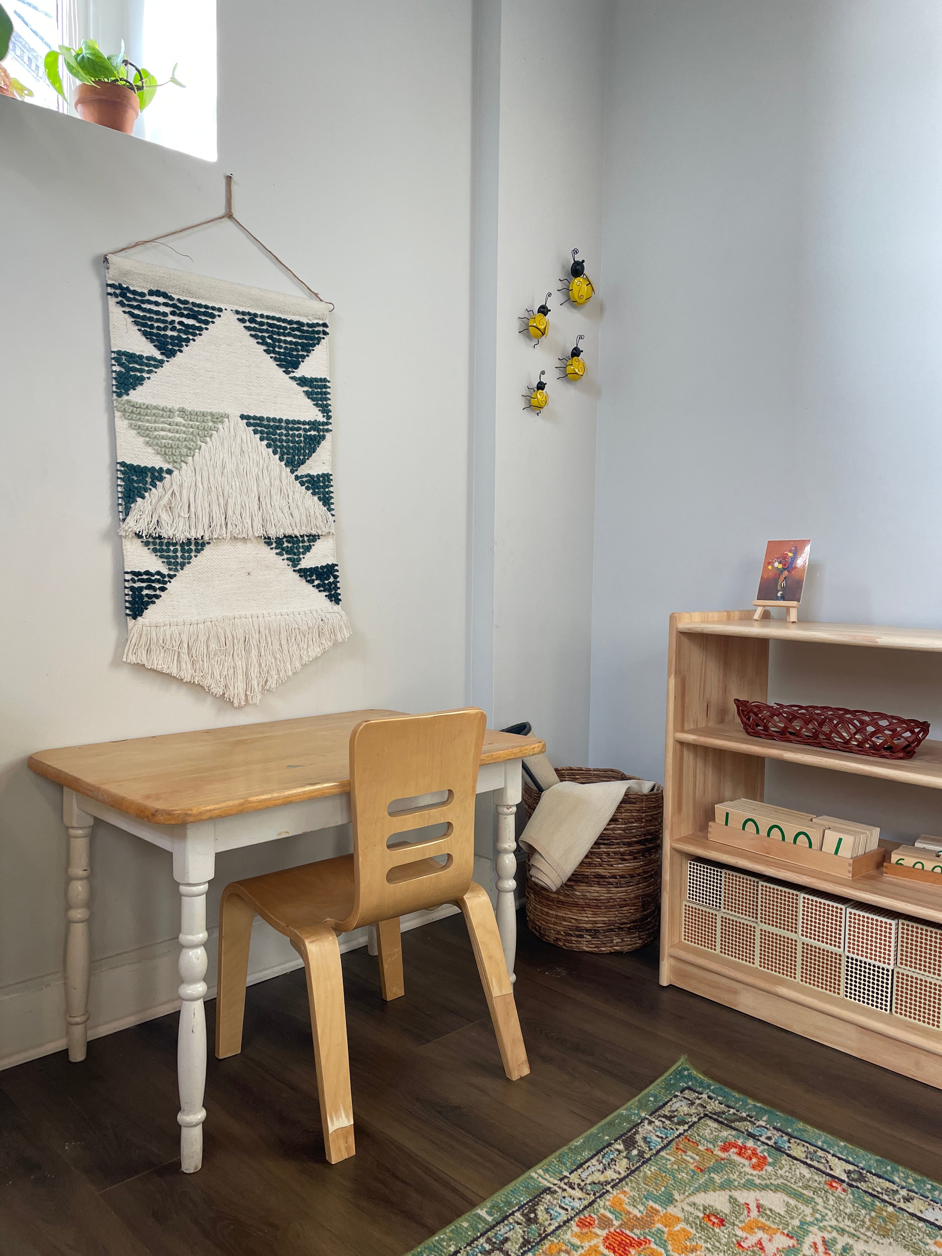 Yesterday, while our youngest community members took their afternoon nap, we began re-arranging the classroom with some of our older children. We rolled the big rugs and worked together to carry them to their new spot. Stephanie and I moved shelves and the children rushed with small brooms and dustpans to sweep the messes that had collected behind them. At one point, four shelves were in the middle of the classroom. One of our youngest children came in from his nap, still waking up and a little disoriented. I told him we were rearranging the furniture and asked him if he wanted to sweep under the shelves that had been moved. He ran to get the small broom and dustpan and precisely swept up little piles of dried beans that had fallen behind the Practical Life shelf. “What do you think about a table here?” some of them asked. When they arrived this morning, some of them proudly gave their family a tour of the classroom that they helped rearrange.
